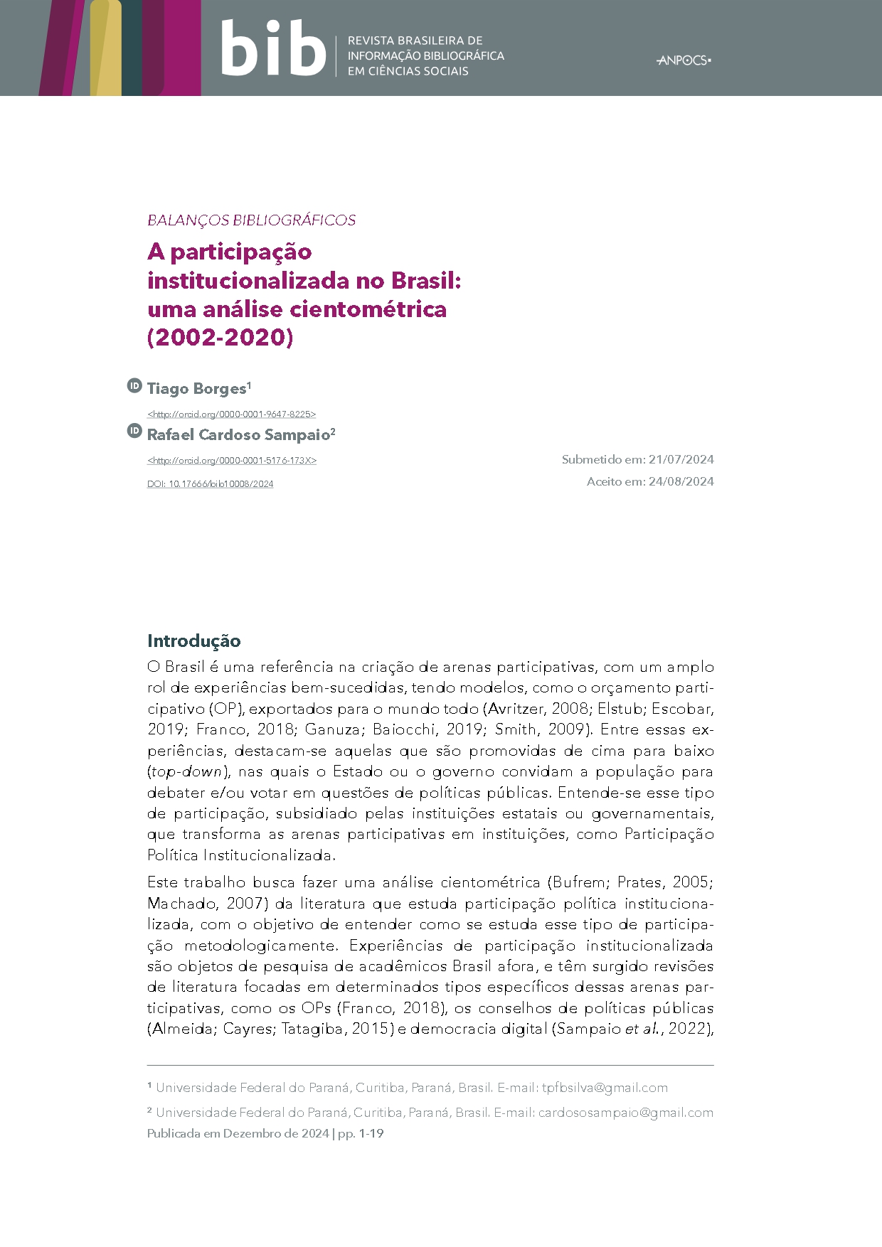 - Núcleos: GEPPADE/UNESP, NDAC/CEBRAP, NUPAD/UFES